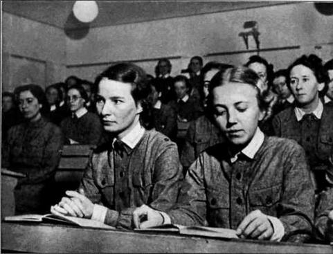 Зимой "Лотты" носили шинель из сукна и шапку из белой овчины, а летом плащ.