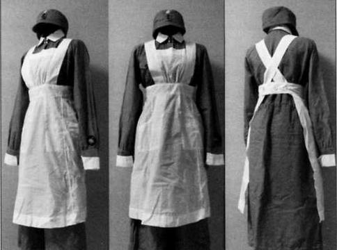 Парадное платье шилось из серой шерсти и носилось с черными чулками и туфлями, белой повязкой и белыми перчатками.
