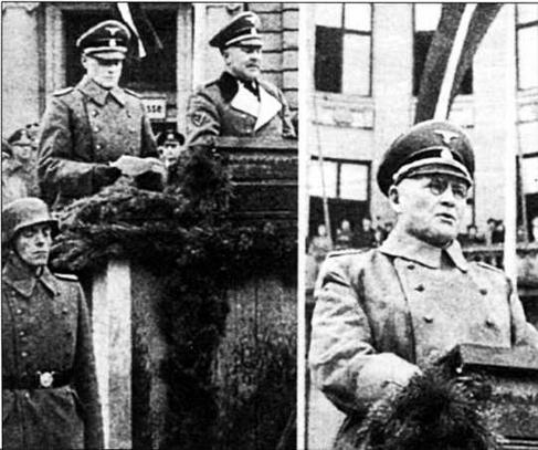 Рудольфе Бангерскис и Петер Хансен на торжественной церемонии по поводу присяги латышских добровольцев войск СС, Рига, 29 марта 1943 года