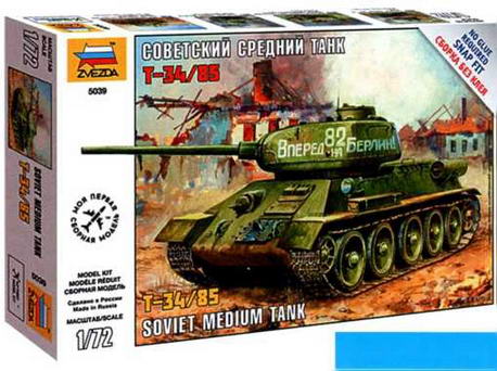 Шедевр советского танкостроения Т-34, давно стал брендом и символом Победы над фашизмом. И сегодня, интерес к этому танку не угасает. В каталогах всех известных фирм, занимающихся выпуском моделей-копий, неизменно присутствует легендарная тридцатьчетверка в различных модификациях и ипостасях. Вот и отечественная «Звезда», в конце 2015 порадовала всех любителей бронетехники масштаба 1:72 , выпустив долгожданную модель Т-34/85 в серии «сборка без клея». До этого ребята из Лобни уже имели опыт с Т- 34/76, и эта модель до сих пор пользуется неплохим спросом. Посмотрим более внимательно на содержимое очередной новинки.