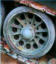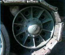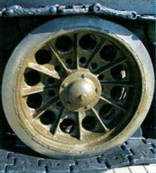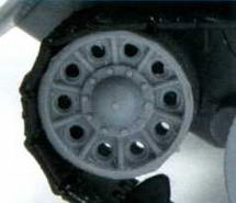 Опорные катки, на сленге просто - «спайдеры», имеют хорошую для данного масштаба проработку. Единственный момент - центральный болт на крышке ступицы опорных катков и направляющего колеса, он появился на послевоенных машинах, так же как и слегка видоизмененная сама крышка ступицы.