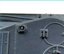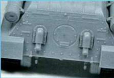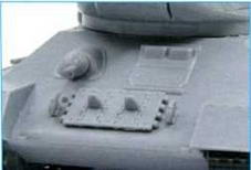 Прибор наблюдения Мк-4 позднего типа должен иметь защитную крышку. Обратите внимание на расположения стопора на петле люка заряжающего. На модели показан ранний тип с левым расположением стопора. На поздних Т-34/85, с увеличенной командирской башенкой и люком типа «лопата», стопор располагался уже справа