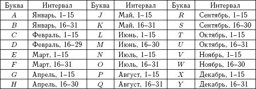 наблюдений. В 1925 г. Э. Боуэр предложил систему предварительных обозначений малых планет, которая используется до наших дней. Остановимся на ней подробнее.Обозначение астероидов. Предварительное обозначение состоит из номера года открытия малой планеты и двух букв латинского алфавита, которые могут сопровождаться однозначным или многозначным индексом. Первая буква соответствует номеру «полумесяца», в котором произошло открытие. Так, планеты, открытые с 1 по 15 января, имеют в предварительном обозначении первую букву A, планеты, открытые с 16 по 31 января, имеют первую букву B и т. д. Так как число полумесяцев в году равно 24, а в латинском алфавите 26 букв, то принято в предварительных обозначениях в качестве первой буквы не использовать буквы I и Z (табл. 3.1).