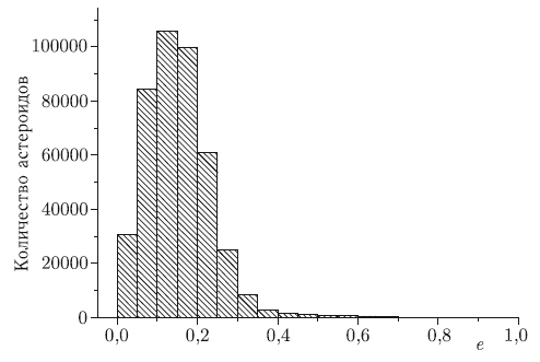 Рис. 3.4. Распределение астероидов по эксцентриситету орбит