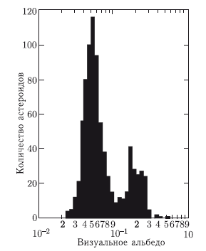 Данные IRAS, прежде всего, подтвердили известный ранее результат, что распределение альбедо астероидов является бимодальным.