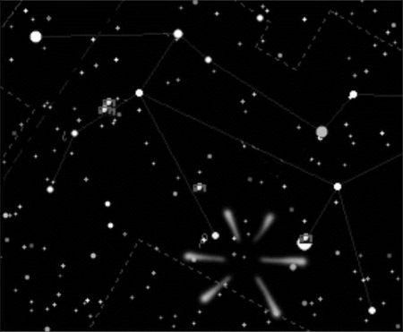 Видимые траектории метеоров потока, спроектированные на небесную сферу, пересекаются в некоторой малой окрестности, называемой радиантом метеорного потока (рис. 5.2). Порождающие метеорный поток метеорные тела являются элементами метеороидного роя и движутся в межпланетном пространстве по весьма схожим орбитам.