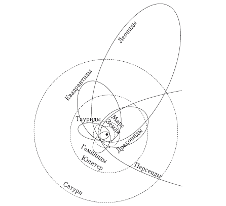 Рис. 5.5. Орбиты некоторых главных метеорных потоков (сплошные линии)