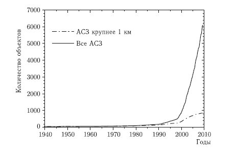 Рис. 1.2. Динамика обнаружения астероидов, сближающихся с Землей (по данным