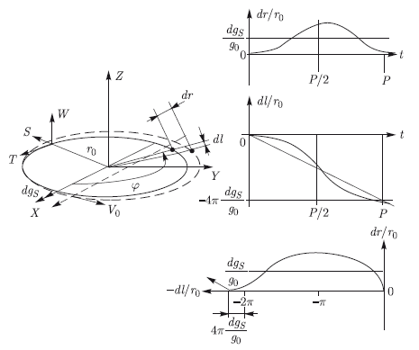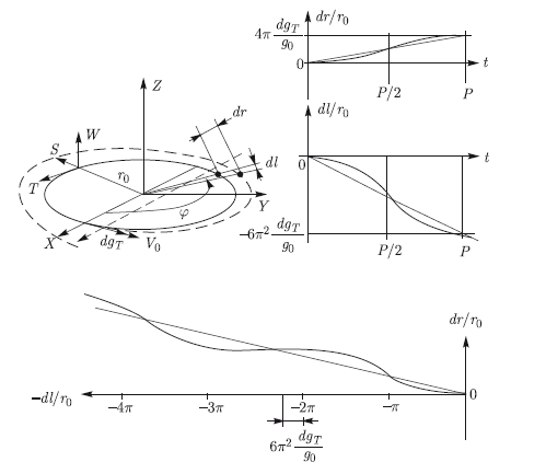 Ясно, что результат изменения текущих координат тела, как и ранее, оказывается чисто периодическим. Максимальный увод будет иметь место через половину витка орбиты, а его величина составит