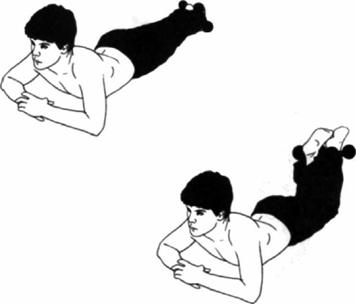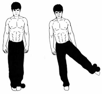 Все упражнения выполняются с прикрепленными (привязанными) к ногам в зоне лодыжек гантелями (кроме упр. 3)