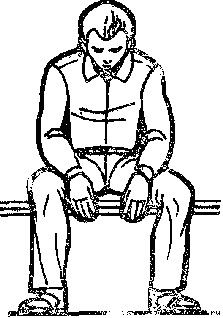 Эта поза для аутогенной тренировки применяется чаще потому, что в ней можно заниматься практически везде, где есть стул, табурет, ящик подходящей высоты и т. п. Критерий пригодности мебели для занятий в позе «кучера на дрожках» — расположение сиденья и бедер [1] занимающегося параллельно полу (см. рис. 1).