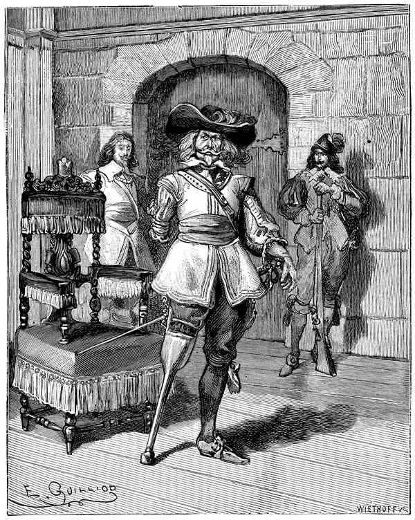 Вдруг он замолчал и замер, дрожа от ярости и одновременно от испуга: дверь комнаты внезапно отворилась, и на пороге появился человек. Гордо подняв голову, он с пылающим взором молча стоял, положив руку на эфес шпаги.