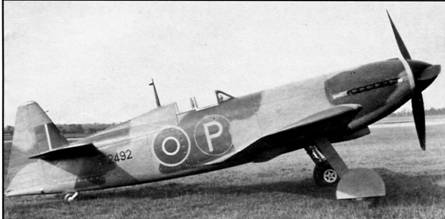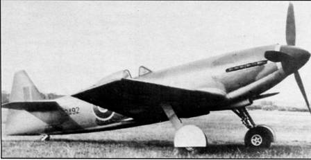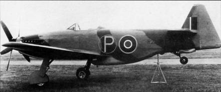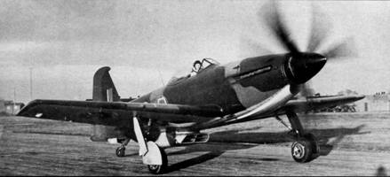 но 14 мая 1943 г. заказ на него отменили.Испытания решили проводить на более просторном аэродроме Харуэлл. Утром 23 мая истребитель расстыковали примерно за час и погрузили на автоприцеп, который к обеду доставил его в Харуэлл. Чуть больше часа потребовалось на сборку и регулировку, во второй половине дня капитан Брайан Гринстед поднял машину в воздух. Летчик отметил хорошую управляемость самолета, но указал и на недостаточную путевую устойчивость. Самолет просто не был способен лететь прямо. Пришлось переделывать оперение. С новым оперением увеличенной площади положение с устойчивостью выправилось, а управляемость стали описывать как «превосходную». Все шло хорошо, пока на 40-м часу работы не отказал «Гриффон». При выполнении боевого разворота у него оторвался поршень. Кабина заполнилась дымом. Гринстед решил сбросить фонарь и дернул за рукоятку. Фонарь улетел, попутно чуть не оторвав руку летчику, и врезался в киль. После этого пилот пошел на посадку с остановившимся двигателем. Ему удалось успешно спланировать и, выпустив шасси, приземлиться без повреждений.