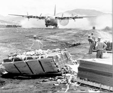 Снабжение базы Кхесань в Южном Вьетнаме сбросом грузов методом срыва