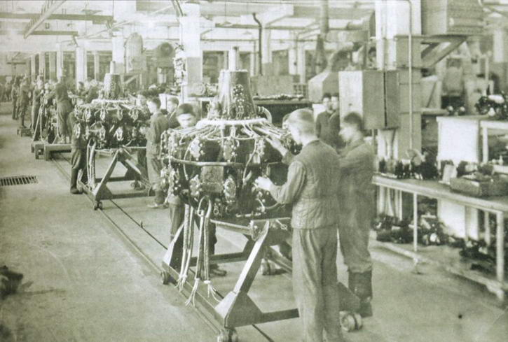 Конвейерная сборка моторов воздушного охлаждения М-82 конструкции А.Д. Швецова на заводе №19 в г. Молотов (ныне Пермь)