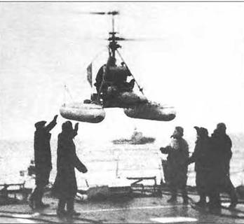 Летчик-испытатель Е.А. Гридюшко сажает Ка-10 на палубу крейсера «Максим Горький». Балтийское море, зима 1950-51 гг.