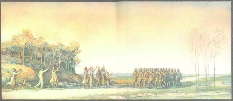 Над Польшей, над РумыниейВсе шире небо синее.Встречали нас со славоюЮнаки Югославии…Пылят, пылят дороженьки,Шумят речные воды.Ах, ноженьки вы, ноженьки,Ботинки-скороходы!Суконные обмотки,Железные подметки!Земля вовек не виделаУверенней походки.