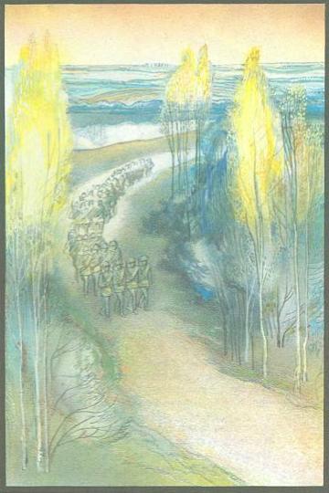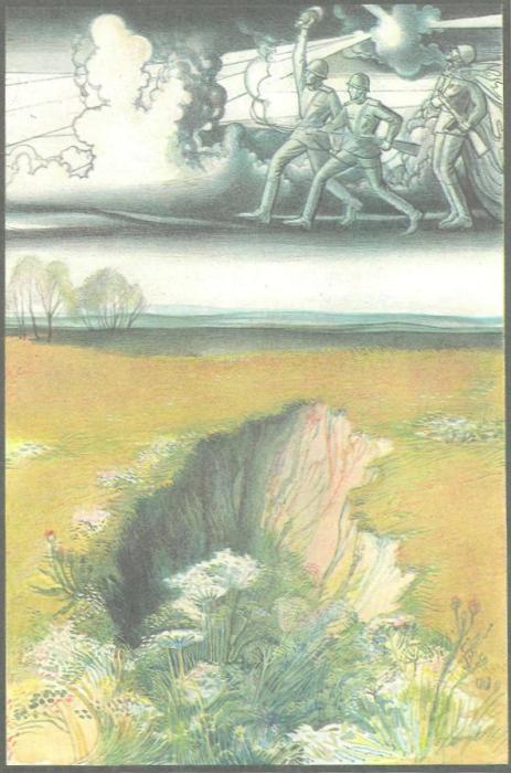 Через сколько-то годов,Проходя по вешним травам,Ты увидишь в поле ров,Нет, не ров — скорей, канаву,Неширокую, в цветахЗатерявшуюся где-то,Справа — в соснах и кустах,Слева — в сизых волнах света.Хоть на вид она чиста —Не ходи канавой босым.Пусть трава сочна, густа —Не коси, сломаешь косу.Под дерном и ныне естьСреди кашки и метелкиГильзы рваные, и жесть,И снарядные осколки.