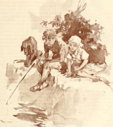 На склоне холма сиделъ пастушокъ Видрикъ. Де|1жа въ 11укахъ удочку, онъ сосредоточенно слЪдилъ за поплавкомъ, слегка дрожавшимъ на зарябившей водЬ.