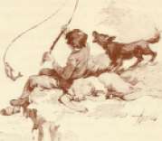 Видрпкъ Г[|) п|1ежнему сйд-Клъ на б|>|)е-гу. Подъ сочувственной ворчан1е Зку. онъ ругаль чортова окуни. кото|1ый пере-г[гызъ леску и теперь съ прежнимь упор-ствомъ водиль его за ноп,. Видрикд. ви-лклъ. какд. от. кружился вокруп. поплавка, какд. билъ хвостомд. по П1юбк1; — и ек'лп бы опъ логъ с\г1;яться, то изъ воды несомненно раздался бы его дьявольски хохоть.