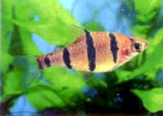 Суматранский барбус (Barbus tetrazona (Bleeker, 1855)) населяет медленно текущие реки и озера Индонезии,