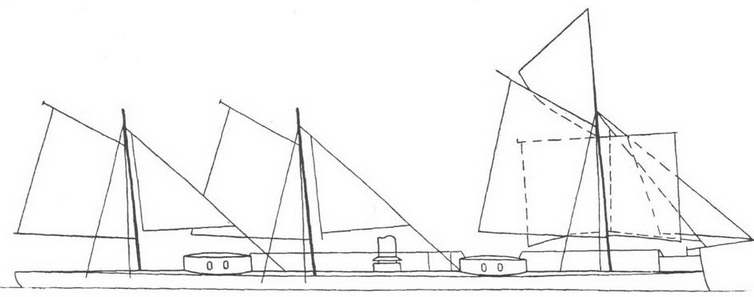 Двухбашенный броненосный фрегат типа "Адмирал Чичагов" (схема парусного вооружения)