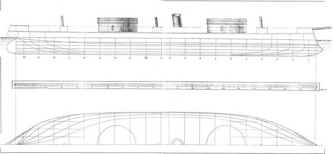 Двухбашенный броненосный фрегат типа "Адмирал Чичагов" (Теоретический чертеж)