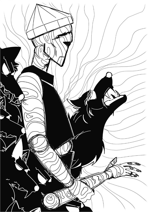 Плотник вдруг занят куклами стал,Хоть от старости очень уж мал,Захотел себе сына, помощника.Заручился поддержкой игольщика,Из древа кусочка сделал ребенка.От бревна во внешности немного,Но древесная гладь заметна прохожим,Словно неровности наподобие кожи.Ростом с простого жеребчика,Нравом как будто родился он с мечиком.Весел и добр, с пытливым умом,Живет в деревушке за лесистым холмом.Но время шло, вокруг все менялось.В воюющий голод все выжить пыталось.Люди старели, болели, терялись.Ради виновных и пищи копались.И кто всех виновней при грусти мог быть?Лица с чьего веку улыбки не смыть?Ему не понять, как ужасны болезниИ почему так печальны церковные песни.Да и в церкви его как демона знали,Мечтали, что в небе Создателю скажут:«Твой идол – осколок чернейшей из магий.Мы в ад для котлов пошлем его палки».Лет двадцать играет с детьмиИ на должности важной с семи.В лес кидает он руки и ноги,Чтоб увидеть, не близко ли волки.Как псы во дворе на кость с мясом,Каждый с стеклянным озлобленным взглядом.Тогда все старались припрятать овец,Закрывали калитки, что смотрят на лес.Кабы не он, еды б не осталосьИ каждую ночь шерсть домов бы касалась.Детей подпускать к нему перестали.Не били его разве что сталью.А он одиноко сидел на пеньке,Не видел отличий в деньке и деньке.Иногда рукой машет детишкам,Но их от него уходить учат в спешке.И последние, кто его радовал, —Те волки, кого лжеобедом обманывал.То пальчик подкинет, то кисть,А они то играют, то жаждут разгрызть.А однажды волчонок вернулся с утраченным,Вернулся к семье без смрада поглаженным.В их жизни вошли люди как в жизни деревьев.И того, что средь люда, а не сотен кореньев.И теперь люди травят обоихЗа то, что живут не как питомцы у многих.И волки живут, пока их не тронут.А тронут – и крови широкий уж омут.Но он не таков, не так воспитали.Создатель по духу создал мягче шали.Пускай одинок и слегка ненавистен,Будет всегда сидяч, бескорыстен.Но все ведь течет как соль внутри моря.Редко счастья залив, чаще – горя.И если залив растет неизменно,То печали потоп все сотрет непременно.Один раз крикнул мальчик какой-то: «Волки!»На пост прибежали послушные ноги.Но вместо тех, кого обходят все кругами,На месте четверо с ножами, с топорами.Летели щепки, пальцы и мольбы.Лицо разбито от уха до губы.И грудь облегчилась на несколько кило.Куски лежали. В деревне око ни одно слезы не пролило.Но вот один с ужасною ухмылкойНанес такой удар орудием крепким,Что щепка в лес с ветрами улетела.Так увлеклись злодеи те весельем,И так устал уж каждый целым телом,Что и не знали о скором их несчастии,Пока не проявилось вмиг клыками на запястье.А наш герой лежал, смотря лишь вверх.То чей-то кусок плоти виден, а то мех.Нет боли, и испуг как будто бы снесло.В глазах только злоба, а также стекло.Ветерок ему голову слегка повернул.В спину бегущему смотрел, не моргнул.Хладно смотрел, как тело в кровиКидает крик боли в верницы равнин.Волки подняться на ноженьки дали,Четверо мальчиков без требухи спали.Кукла ввинтила все части в себя.Замер он, лишь на дырку глядя.В груди ни намека на сердцеИ даже души хоть одну дверцу.Значит, негде быть совести мастера,Как и грехам, со слов пастыря.Кукла гладит всю стаю по очереди.Снова будут в церкви отповеди.И куклу уж точно сделают крайней.Значит, надо из всех самым быть ранним.И он пошел обратно к деревушке,А с