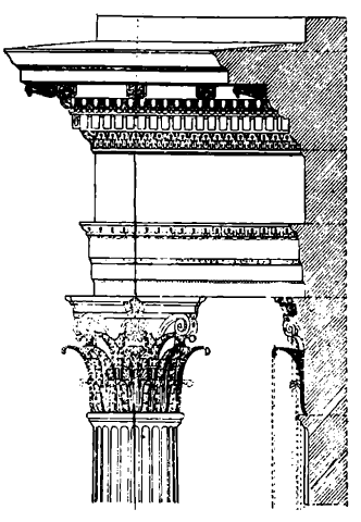 Коринфский ордер— берет за основу ионический ордер и приспособляет к нему украшенную листьями и завитками коринфскую капитель, отличающуюся богатством и роскошью форм. Изображение этой капители принадлежит, по словам Витрувия, коринфскому скульптору Коллимаху (IV в. до н. э.), который положил в основу капители форму цветочной чашечки и окружил ее венцом из листьев.