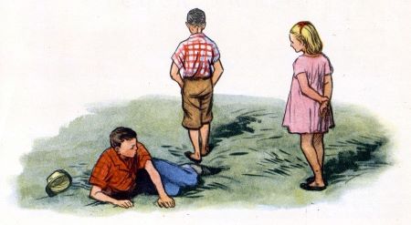 Всё-таки держусь, еду. А конь вдруг ни с того ни с сего остановился, опустил голову. Я сам не помню, что случилось. Только чувствую — трава в нос и рот набилась. Открыл глаза — надо мной лошадиная морда.
