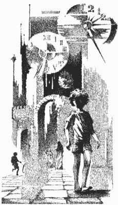 Вдали иногда чудились крыши и блестящие башни городов, порой среди звезд появлялись и плыли, как белые луны, циферблаты часов. Они были разной величины и показывали разное время, а на некоторых стрелки бегали, как на секундомерах, — поди разберись, что к чему. Яшка и не пытался разобраться. Просто шагал без устали и смотрел. Он верил Юкки и знал, что рано или поздно Дорога приведет к Вильсону.