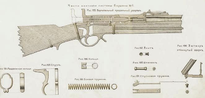 называть винтовкой Бердана-Горлова-Гуниуса. Доработанный образец был представлен комиссии ГАУ, с честью выдержал все испытания и в 1868 году был принят на вооружение под наименованием «4,2-линейная стрелковая винтовка образца 1868 года».Винтовка «Бердан №1». Затвор открыт