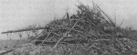 Танк Т-34/85 2-й гв. танковой армии в засаде. Восточная Померания, февраль 1945 г.