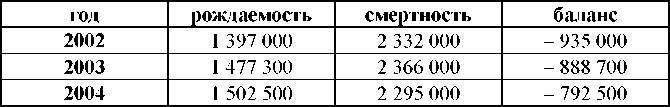 Рождаемость упала до уровня развитых стран, в то время как смертность достигла уровня развивающихся - смертность на протяжении всех 20 лет чиновничье-олигархической бюрократии находилась на уровне от 1,66 миллионов человек до 2,30 миллионов человек в год.