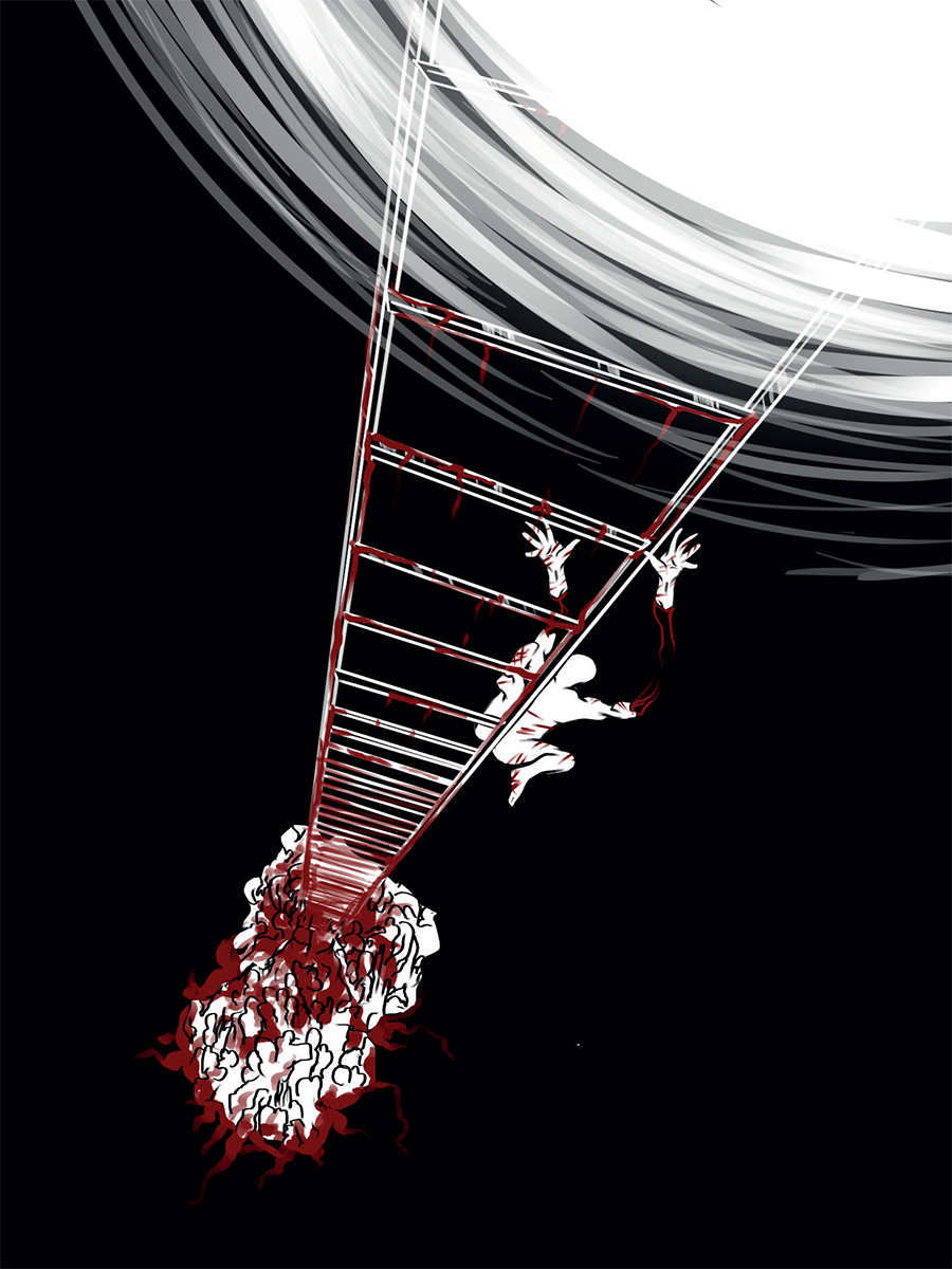 Погибшие мнения, голые лестницы.В верх не поверили, счастье мерещится.Мнимые окна, пейзажи не мнимые.Странности резкие, мы не плаксивые…Скинемся дуростью, может, получится?Падшие с лестницы скоро отмучатся.Кровь исчерпаема, вены порезаны.Мы не сдвигаемы, этим не брезгуем.Мир ослепителен, но разлагается.Мы наплевали, в бреду потеряемся.Все надоело? И это позиция…Рядом с упертым тоска бледнолицая.Погибшие мнения, голые лестницы.В верх не поверили, счастье мерещится.Мнимые окна, пейзажи не мнимые.Жить надоело, для смерти плаксивые…