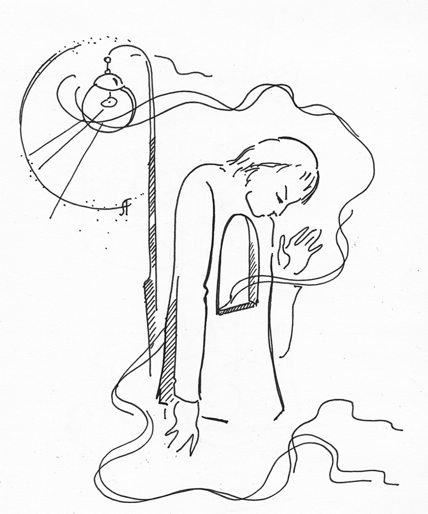 в горе разума надежды обрамление.Быть может, труд, терпение развеют смог безвиденья?Но нет, развеет смог лишь тень моего видения.Приму ли я решения придать себя себе?Иль снова стану бременем и кану в бытие:Сольюсь с природой комнаты,Приткнусь в упругость пола.И, разлагая время,Наступит миг зазора.И чрез зазор увижу вновь, чтоВ одинокой комнате повисла тишина,А на том конце коридора виднеется Луна…