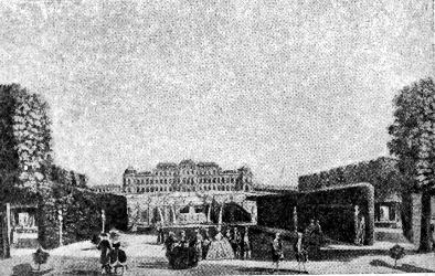 Сад и дворец Бельведер в Вене. (Гравюра Шютца)