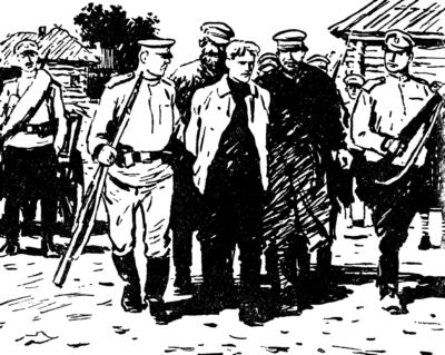 широкими спинами толпились солдаты, прибежавшие ловить большевика.Данилке скрутили руки — он и не сопротивлялся — и всей гурьбой повели по улице села.
