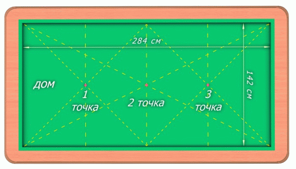 Игровое поле лучше всего освещать сверху мощными углубленными светильниками, часть которых открыта. Свет направляется на поверхность стола и обычно удален от него на 90–95 см. не следует пользоваться боковым дневным или электрическим светом. Во-первых он ослепляет игроков, а во-вторых, шары начинают из-за него отбрасывать тени на сукне.