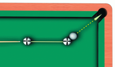 Вообразим линию, которая проходит через середину лузы до центра прицельного шара. Точка, находящаяся на обратной от лузы стороне, считается истинной точкой прицеливания, поскольку как раз в ней должно произойти столкновение шаров, для того чтобы играемый шар оказался в лузе.