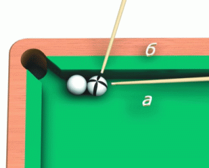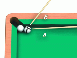 Если же прицельный шар располагается не у самого борта, то надо сделать небольшой накат, после чего «свой» шар подойдет к борту вплотную.