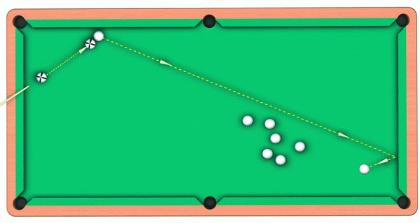 Суть этого удара заключается в следующем: после первого столкновения битка с играемым шаром последний, отразившись от борта, снова ударяется о биток и затем уже падает в лузу.