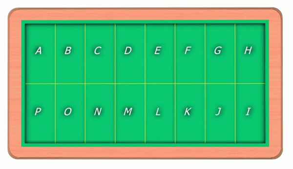 В центре каждого квадрата делаются достаточно большие (основные) отверстия. Общее количество таких отверстий составляет 72. Каждый из столбцов квадратов помечается цифрами от 1 до 6. Ряды квадратов по длине обозначаются десятками.