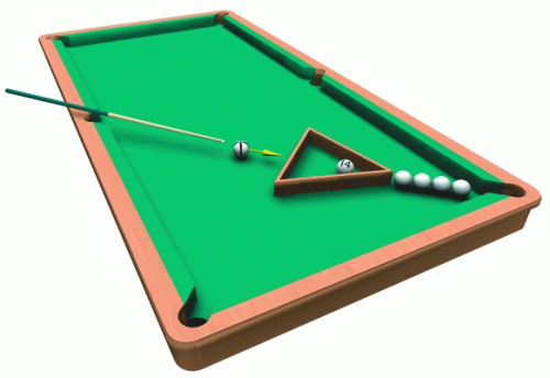 Шары покатятся по сложенным киям на стол и пойдут в направлении средней лузы.