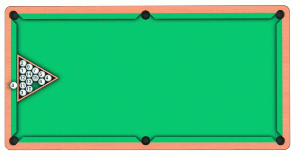 «Восьмерка» выставляется на борту бильярдного стола. Для того чтобы шар оказался в центре выстроенной пирамиды, нужно бросить его на борт с высоты примерно 15 см.