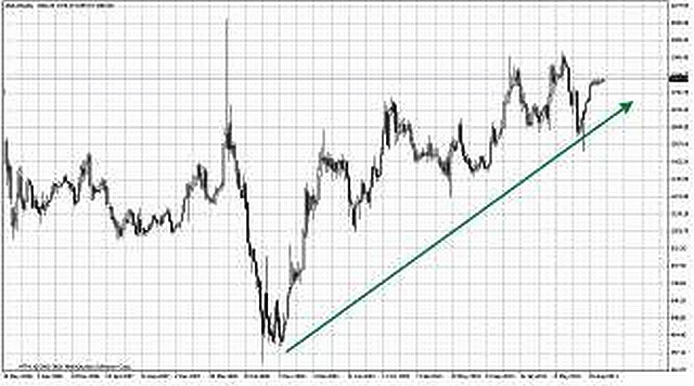 Августовское 2011 года падение на рынках. Синицын за две недели теряет 70% одного из своих счетов. Того, за которым мы, с его согласия, наблюдаем: с полутора миллионов скатывается до 370 тысяч рублей. Разгадка проста – он пытался поймать дно падения, которое еще только набирало обороты и демонстрировало лишь краткосрочные отскоки, которые затем молниеносно поглощались новым падением котировок. Он, как Лаокоон, пытался бороться со змеями даунтренда, и едва не был ими задушен. В двадцатых числах августа падающий рынок обрел временную поддержку, продемонстрировав потрясающую волатильность: внутридневной диапазон колебаний превышал 10%. А это звездный час для Синицына –