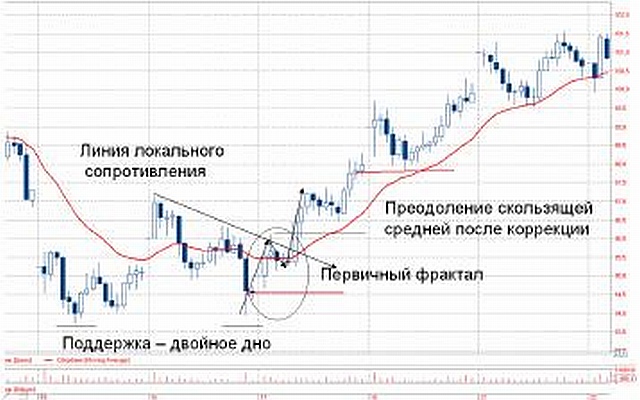 – наличие формации поддержки (двойное дно, тройное дно, окруженный минимум, ложный пробой вниз перекупленного минимума).