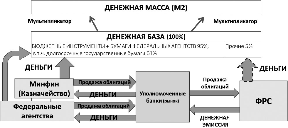 Рис. 6б. Эмиссия доллара (формирование денежной базы) на основе покупки госбумаг