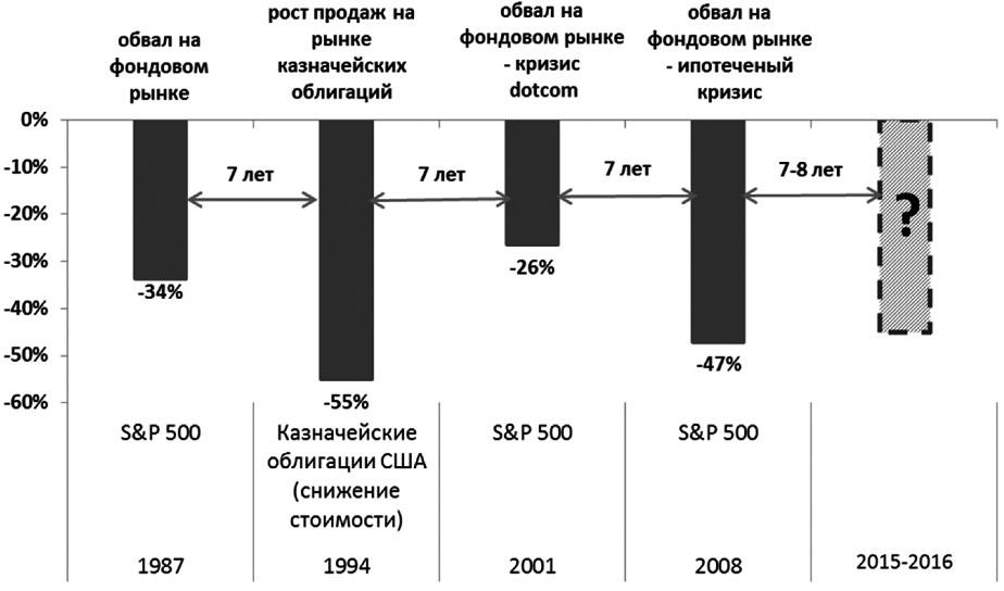 Рис. 6в. «Цикличность» провалов (динамика Индекса S&P 500, %)