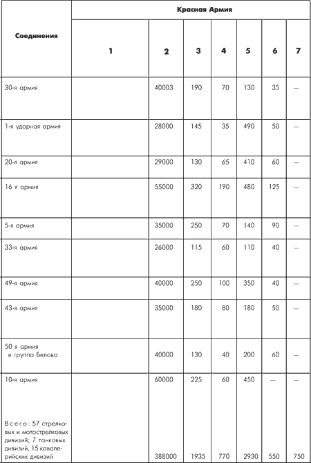 Примечание. Соотношение сил по родам войск – пехота 2: 1; полевая артиллерия 1,5: 1; артиллерия ПТО 1: 1,2, минометы 1,7:1; танки 1: 1,4. Таким образом, в пехоте, полевой артиллерии и по минометам имелось превосходство на нашей стороне; по противотанковой артиллерии и танкам – на стороне немцев. [65]